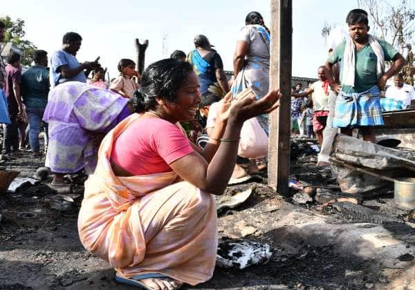திருப்பூர், கல்லாம்பாளைம், எம்.ஜி.ஆர் நகரில் கேஸ் சிலிண்டர் வெடித்து ஏற்பட்ட தீவிபத்தில் வீடுகளையும், பொருட்களையும் இழந்த பெண் கதறி அழுதார்.