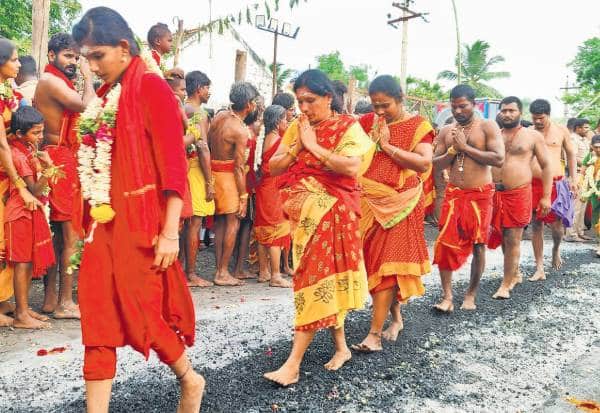 பழநி நெய்க்காரன்பட்டி மண்டு காளியம்மன் கோவில் விழாவில் பூக்குழி இறங்கிய பக்தர்கள்