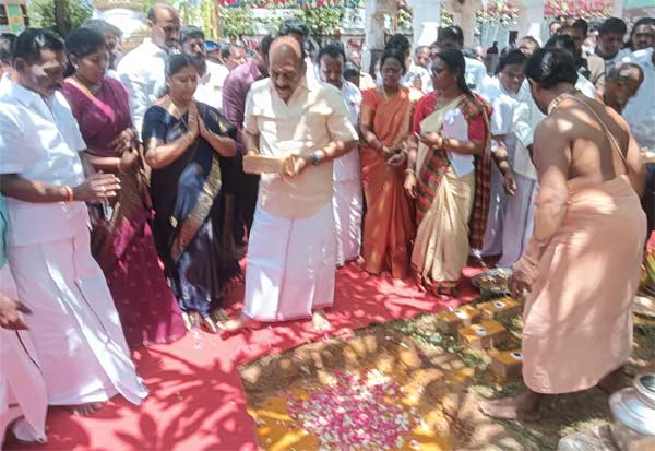 செங்கல்பட்டு மாவட்டம், காட்டாங்கொளத்துார் ஒன்றியம், வண்டலுார் தாலுகா, மண்ணிவாக்கம் ஊராட்சியில், ஆயிரம் ஆண்டுகள் பழமையான மண்ணீஸ்வரர் கோவில் புனரமைப்பு பணிகளை முதல்வர் ஸ்டாலின், 'வீடியோ கான்பரன்ஸ்' மூலம் துவக்கி வைத்தார்.நிகழ்ச்சியில் சிறு, குறு, நடுத்தர தொழில் துறை அமைச்சர் அன்பரசன், செங்கல்பட்டு எம்.எல்.ஏ., வரலட்சுமி, மாவட்ட வருவாய் அலுவலர் கணேஷ் குமார் உட்பட பலர் பங்கேற்றனர்.
