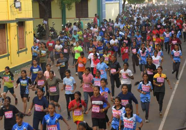முன்னாள் முதல்வர் காமராஜர் பிறந்தநாள் விழாவை முன்னிட்டு தேனி நாடார் சரஸ்வதி ஆண்கள் மேல்நிலைப்பள்ளியில் நடந்த மாரத்தான் போட்டியில் பங்கேற்றவர்கள்.