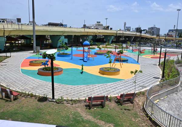 கோயம்பேடு மேம்பாலத்தின் கீழ் பகுதியில் புதிதாக கட்டப்பட்டு வரும் பசுமை பூங்கா பணிகள் இறுதி கட்டத்தை எட்டியுள்ளது.