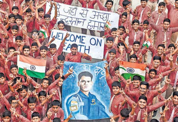 இந்திய விண்வெளி வீரர் சுபான்ஷூ சுக்லா பூமிக்கு வெற்றிகரமாக திரும்பியதை, உத்தர பிரதேசத்தின் மொராதாபாதில் பள்ளி மாணவர்கள் கொண்டாடி மகிழ்ந்தனர்.