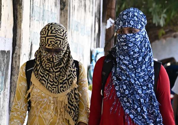 சென்னையில் வெயிலின் தாக்கம் சற்று அதிகரித்து காணப்படும் நிலையில் பெண்கள் முகத்தை முழுவதும் துணிகளால் மூடிக்கொண்டு செல்கின்றனர்.இடம்: அண்ணாசாலை