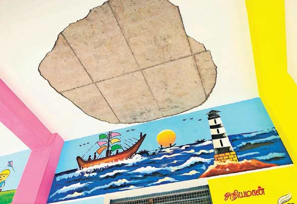 செங்கல்பட்டு மாவட்டம் மதுராந்தகம் அடுத்த புதுப்பட்டு ஊராட்சியில் புதிதாக கட்டப்பட்ட பள்ளியின் கூரை பெயர்ந்து விழுந்தது.