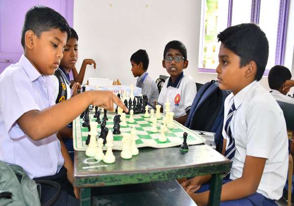 கோவை மாவட்டத்தில் நடந்த பள்ளிகளுக்கான குறுமைய விளையாட்டுப் போட்டிகளின் ஒரு பகுதியாக செஸ் விளையாடிய மாணவர்கள். இடம்; சி.எஸ்.ஐ., மெட்ரிக் பள்ளி.