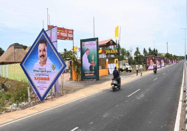 புதுச்சேரி- அரும்பார்த்தப்புரம் பைபாஸ் சாலையில் தனியார் ஓட்டல் திறப்பு விழாவிற்காக அரசியல் பிரமுகர்களை வரவேற்று அத்துமீறி வைக்கப்பட்டிருந்த டிஜிட்டல் பேனர்கள்.