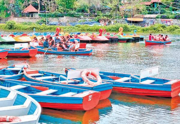 கொடைக்கானலில் நீடித்த சாரல் மழை மற்றும் சூறைக்காற்றுக்கு இடையே சுற்றுலாபயணிகள் படகுசவாரி மேற்கொண்டனர்