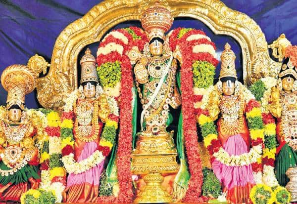 மதுரை முனிச்சாலை ஸ்ரீனிவாச பெருமாள் கோவில் ஆனி பிரமோற்சவ விழாவில் நேற்று திருக்கல்யாணம் நடந்தது.