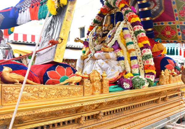 2ம் நாள் ஆடித் திருக்கல்யாணம் விழாவையொட்டி ராமேஸ்வரம் ராமநாதசுவாமி கோயிலில் இருந்து தங்க பல்லாக்கில் பர்வதவர்த்தினி அம்மன் எழுந்தருளி வீதி உலா வந்தார்.