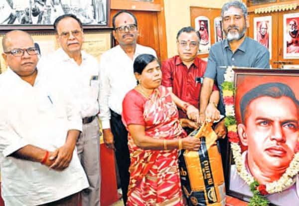 தினமலர் நிறுவனர் டி.வி.ராமசுப்பையர் நினைவு தினத்தை முன்னிட்டு மதுரையில் பாரதி யுவகேந்திரா சார்பில் பார்வையற்ற மாற்றுத்திறனாளிக்கு வழக்கறிஞர் ராமகிருஷ்ணன் அரிசி வழங்கினார்.