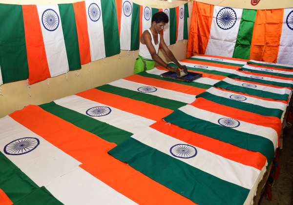 சுதந்திர தினத்தை முன்னிட்டு கோவை டவுன்ஹால் பகுதியில் தேசியக்கொடி தயாரிக்கும் பணி தீவிரமாக நடந்து வருகிறது.