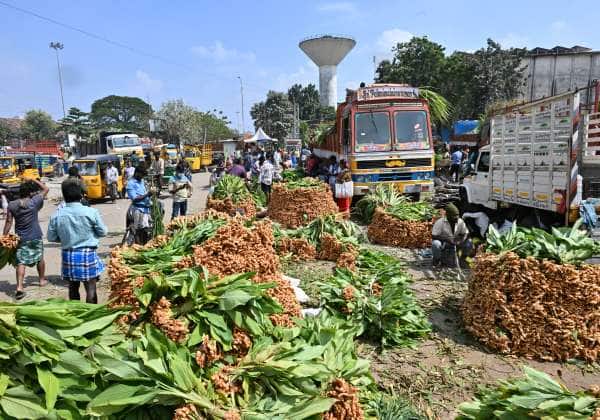 பொங்கல் பண்டிகையை முன்னிட்டு, சென்னை கோயம்பேடு மார்க்கெட்டில் அமைக்கப்பட்டுள்ள சிறப்பு சந்தையில், விற்பனைக்காக குவிந்துள்ள மஞ்சள் கிழங்கு.