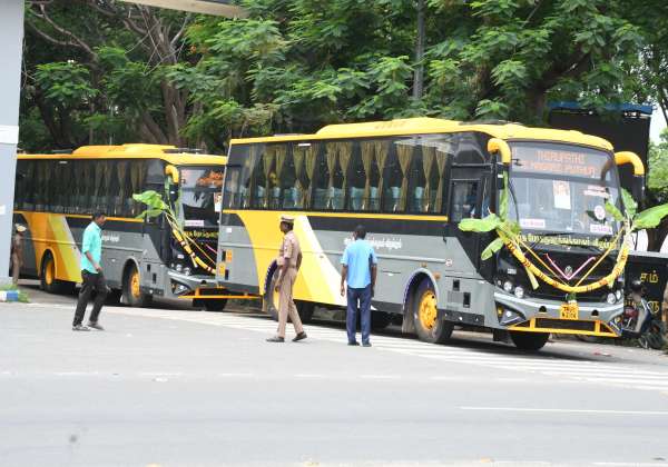 தமிழ்நாடு அரசு திருவள்ளூர் மாவட்டம் போக்குவரத்துறை தமிழ்நாடு அரசு போக்குவரத்து கழகம் திருவள்ளூர் மண்டலம் புதிய குளிர்சாதன பேருந்துகள் துவக்கப்பட்டது
