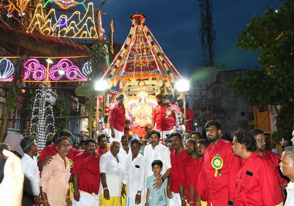 புதுச்சேரி முத்தியால்பேட்டை ஸ்ரீ பொன்னமாரியம்மன் கோயில் 90 ஆம் ஆண்டு பிரம்ம விழாவை முன்னிட்டு நடந்த தேர்த் திருவிழா.