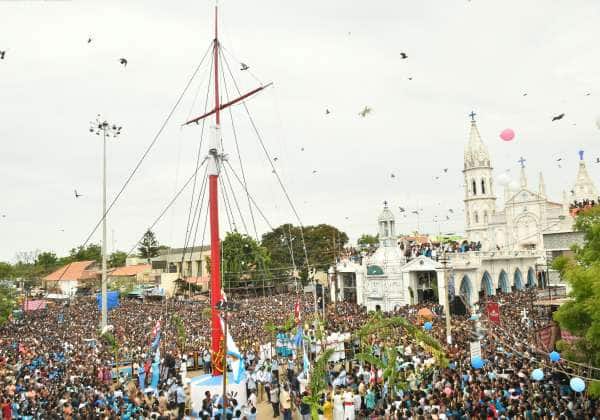 பிரசித்தி பெற்ற தூத்துக்குடி பனிமய மாதா ஆலய திருவிழா மரியே வாழ்க கோஷம் விண்ணைப் பிளக்க, கொடியேற்றத்துடன் துவங்கியது.