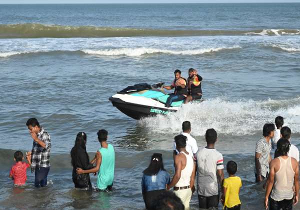 ஞாயிற்றுக்கிழமை விடுமுறை தினம் என்பதால் ஏராளமான மக்கள் சென்னை மெரினா கடற்கரையில் குடும்பத்துடன் குவிந்தனர். இதில் ஒரு சிலர் ஆபத்தை உணராமல் கடலில் குளித்தவர்களை ரோந்து போலீசார் எச்சரித்தனர்.