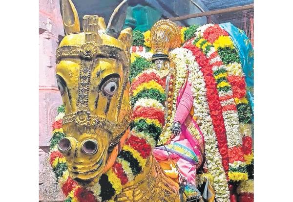 திருக்கோஷ்டியூர் சவுமிய நாராயணப்பெ ருமாள் கோவில் திருவாடிப்பூர உற்ஸவம் எட்டாம் நாளில் குதிரை வாகனத்தில் எம்பெருமான் எழுந்தருளினார்
