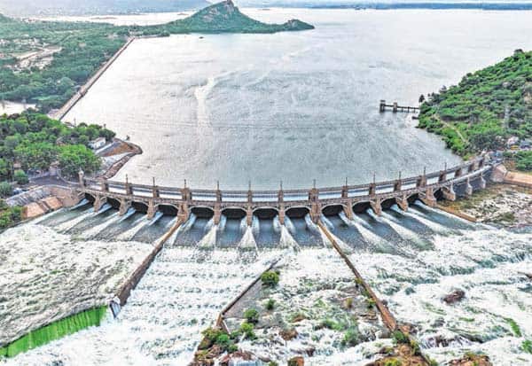 மேட்டூர் அணை, 16 கண் மதகு வழியே திறக்கப்பட்ட உபரிநீர், காவிரியாற்றில் கரைபுரண்டு ஓடியது.