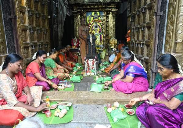 ஆடிப்பூரத்தை முன்னிட்டு சென்னை ஐஸ்ஹவுஸ் டாக்டர் நடேசன் சாலையில் உள்ள பாலாடை அங்காள பரமேஸ்வரி கோயிலில் உலக நன்மை வேண்டி பெண்கள லலிதா சஹஸ்ர நாமத்தை 21 முறை பூஜை செய்து பாடினர்.