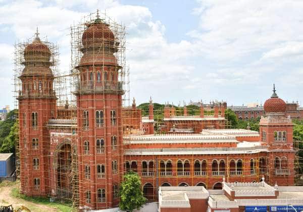 சென்னை பிராட்வே உயர் நீதிமன்ற வளாகத்தில் அமைந்துள்ள சட்டக் கல்லூரி பழமை மாறாமல் புதுப்பிக்கும் பணி நடந்து வருகிறது.