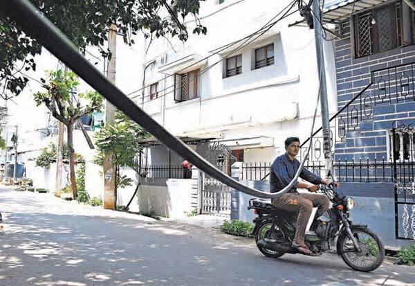 கோவை சாய்பாபா காலனி கே.கே. புதூர் நர்மதா வீதியில் வாகன ஓட்டிகளுக்கு ஆபத்து ஏற்படுத்தும் வகையில் சாலையில் தொங்கிக் கொண்டு இருக்கும் கேபிள்.