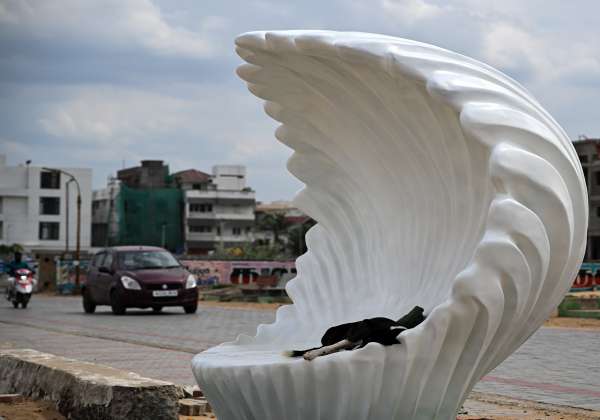 பொதுமக்கள் விடுமுறை தினத்தில் அதிகம் கூடும் கடற்கரை சாலையில் மாநகராட்சி சார்பில் புதிதாக வைக்கப்பட்டுள்ள சிற்பி வடிவ இருக்கைகள்.இடம் : பாலவாக்கம் கடற்கரை