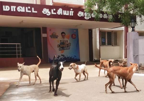 சிவகங்கை கலெக்டர் அலுவலக வளாகத்தில் தெரு நாய்கள் தொல்லை அதிகரித்து வருகிறது.