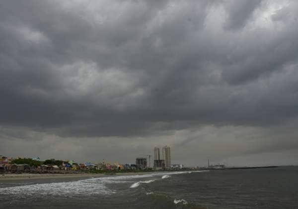 சென்னையில் திடீரென போல் கருமேகம் சூழ்ந்து மழை வருவது போல் காணப்பட்டன. இடம்: காசிமேடு, சென்னை.