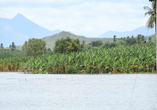மேற்குத் தொடர்ச்சி மலைப் பகுதிகளில் பெய்து வரும் கனமழை காரணமாக பவானி ஆற்றில் வெள்ளப்பெருக்கு ஏற்பட்டதை தொடர்ந்து பவானிசாகர் டேம் நீர் பிடிப்பு பகுதி அருகே உள்ள கிராமங்களில் பயிரிடப்பட்டுள்ளவாழை பயிர்கள் நீரில் மூழ்கின இடம் சிறுமுகை அடுத்துள்ள சித்தன் குட்டை கிராமம்