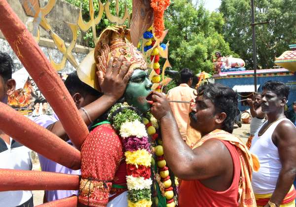விருத்தாசலம் காந்தி நகர் மாரியம்மன் கோவிலுக்கு அழகு குத்தும் பக்தர்கள்.