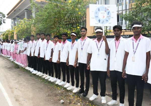 திருவள்ளூர் அரசு மருத்துவக் கல்லூரி மருத்துவமனையில் எலும்பு மற்றும் மூட்டு நோயால் சிகிச்சை சிகிச்சை துறை மனித சங்கிலி விழிப்புணர்வு ஏற்படுத்தினர்