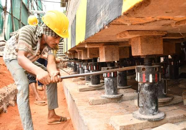800 ஆண்டுகள் பழமை வாய்ந்த சென்னை வியாசர்பாடி, ரவீஸ்வரர் கோவில் ராஜகோபுரம் ஜாக்கி மூலம் 6.5 அடி உயர்த்தும் பணி நடக்கிறது.
