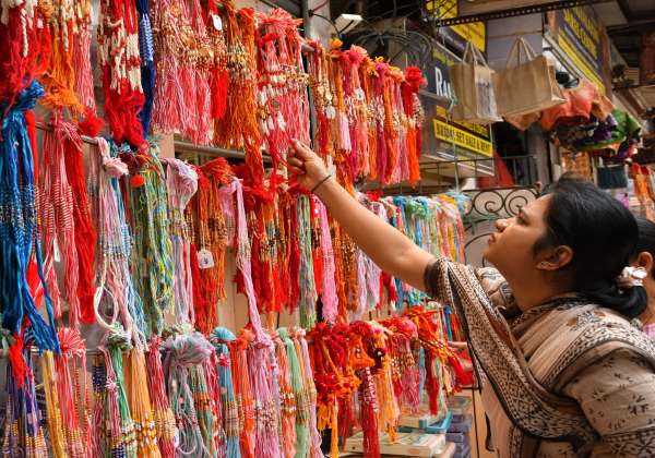 சகோதரத்துவத்தை போற்றும் ரக்ஷா பந்தன் பண்டிகை, வரும் 9ம் தேதி கொண்டாடப்படவுள்ளது. இதற்காக ராக்கி கயிறுகளை சென்னை சவுகார்பேட்டையில் விற்பனை செய்யப்படுகின்றன இதனை பெண்கள் ஆர்வமுடன் வாங்குகின்றனர்.
