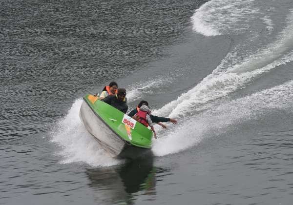 ஊட்டி அருகே பைகாரா ஏரியில், முழுமையாக நீர்மட்டம் உயர்த்துள்ளதால் , ஸ்பீட் போட்டில் செல்லும் சுற்றுலா பயணிகள் .