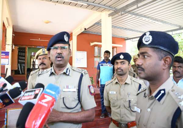 திருப்பூர் மாவட்டம் குடிமங்கலம் அருகே சிக்கனூத்தில் விசாரிக்க சென்ற எஸ்.ஐ.சண்முகவேல் கொலை செய்யப்பட்ட தென்னை தோப்பில் விசாரணை நடத்திவிட்டு பேட்டி அளித்த கோவை மே.மண்டல ஐ.ஜி.செந்தில் குமார்.