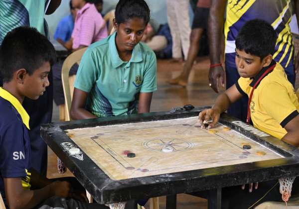 கோவை பாரதியார் பல்கலையில் நடந்த பள்ளிகளுக்கு இடையேயான குறுமைய போட்டிகளில் கேரம் போட்டியில் திறமையை வெளிப்படுத்திய மாணவர்கள்