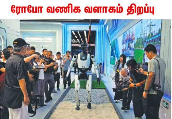 கடந்தாண்டில், 5.56 லட்சம் ரோபோக்களை தயாரித்து, உலகின் மிகப்பெரும் உற்பத்தியாளராக நம் அண்டை நாடான சீனா உள்ளது. அதன் அடுத்தகட்டமாக, அந்நாட்டின் தலைநகர் பீஜிங்கில், மனித உருவத்திலான ரோபோக்களை விற்பதற்கான பிரமாண்ட வணிக வளாகம் திறக்கப்பட்டுள்ளது. இங்கு. 40 நிறுவனங்களின், 50க்கும் மேற்பட்ட ரோபோ மாடல்கள் விற்பனைக்கு வைக்கப்பட்டுள்ளன.