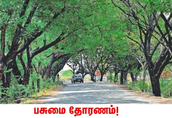 திருப்பரங்குன்றம்-அவனியாபுரம் ரோட்டில் கல்குளம் பகுதியில் இருபுறமும் வளர்ந்துள்ள மரங்கள் தோரணம் போல் பசுமை பந்தல் அமைத்துள்ளன.