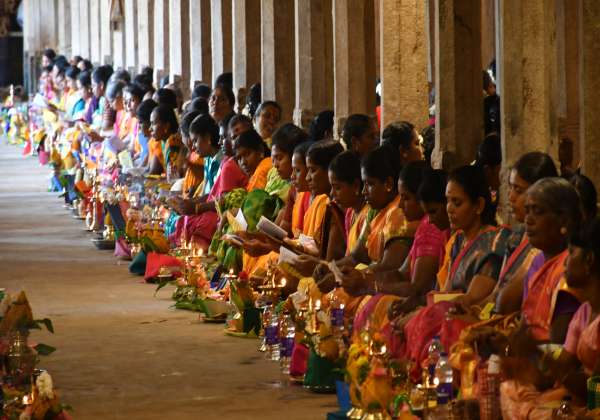 வரலட்சுமி நோன்பையொட்டி திருநெல்வேலி நெல்லையப்பர்-காந்திமதி அம்மன் கோவில் ஆயிரங்கால் மண்டபத்தில் நடந்த சுமங்கலி பூஜையில் ஆயிரக்கணக்கானவர்கள் பங்கேற்றனர்.