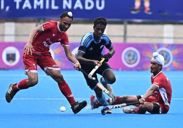 சென்னை எழும்பூர் ராதாகிருஷ்ணன் ஹாக்கி அரங்கில் நடந்த தேசிய சப் ஜூனியர் ஹாக்கி இறுதி போட்டியில் பஞ்சாப் மற்றும் ஜார்கண்ட் அணிகள் மோதின.