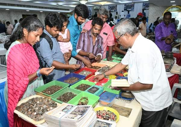 சென்னை நாணயவியல் கழகம் நடத்தும் தேசிய அளவிலான நாணயக் கண்காட்சியில் வைக்கப்பட்டுள்ள பழங்கால தபால்தலை மற்றும் பழங்கால பொருட்களை ஆர்வத்துடன் ஏராளமானோர் பார்த்து ரசித்தனர். இடம்.எழும்பூர்