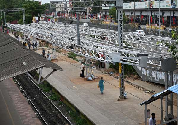 குரோம்பேட்டை ரயில் நிலையத்தில் 1வது நடைமேடையில் மேற்கூரை அமைக்கும் பணி ஆமை வேகத்தில் நடந்து வருகிறது.