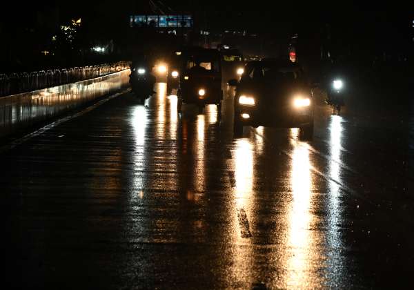 சென்னை நகரில் நேற்று இரவு திடீரென பரவலாக மழை பெய்தது. இடம்.அண்ணா சாலை எல்.ஐ.சி. அருகே.