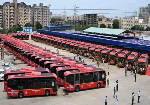 சென்னை மாநகர போக்குவரத்து கழகம் சார்பில் மேம்படுத்தப்பட்ட பெரும்பாக்கம் மின்சார பேருந்து பணிமனையை திறந்து வைத்து இரண்டாம் கட்டமாக 55 குளிர்சாதன பேருந்துகள் மற்றும் 80 புதிய தாழ்தள மின்சார பேருந்துகளை துவக்கி வைத்த துணை முதல்வர் உதயநிதி. இடம் : பெரும்பாக்கம்