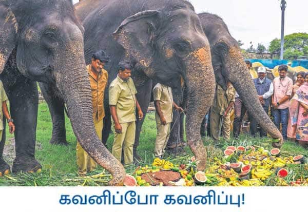 உலக யானைகள் தினத்தை முன்னிட்டு, தெலுங்கானாவின் ஹைதராபாதில் உள்ள நேரு உயிரியல் பூங்காவில், யானைகளுக்கு சிறப்பு உணவுகள் வழங்கப்பட்டன.