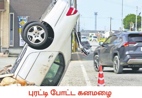 ஆசிய நாடான ஜப்பானில், கடந்த ஒரு வாரமாகவே பலத்த மழை பெய்து வருகிறது. தெற்கே உள்ள குமாமோடோவில், மட்டும் 40 செ.மீ., அளவுக்கு மழை பெய்தது. மழை நின்ற சில நிமிடங்களிலேயே அதன் சுவடு தெரியாத அளவுக்கு வெள்ள நீர் வடிந்துவிட்டது. மழை பெய்தபோது, சாலையோர பள்ளத்தில் இந்த கார் சிக்கி கொண்டது.