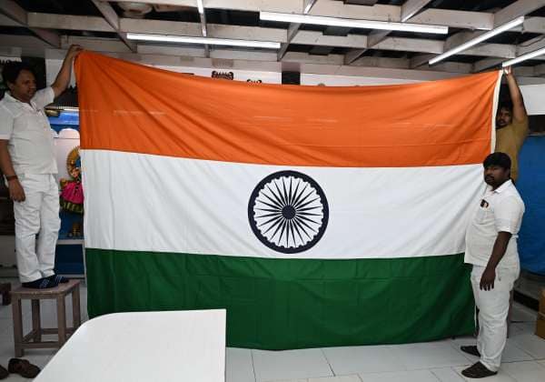 சுதந்திர தினத்தன்று சென்னை கோட்டை கொத்தளத்தில் ஏற்றப்படவுள்ள தேசிய கொடி. இடம்: காதி கிராப்ட், அண்ணாசாலை
