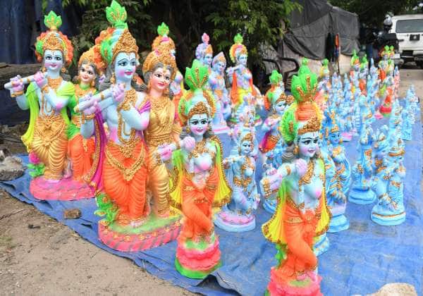 கிருஷ்ண ஜெயந்தியை முன்னிட்டு, கோவை மேட்டுப்பாளையம் ரோடு சேரன் நகர் பகுதியில் ரோட்டோரத்தில் விற்பனைக்காக வைக்கப்பட்டுள்ள கிருஷ்ணர் சிலைகள்.