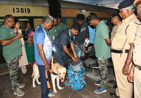 சுதந்திர தின விழாவை முன்னிட்டு புதுச்சேரி ரயில் நிலையத்தில் மோப்பநாய் உதவியுடன் போலீசார் சோதனை நடத்தினர்.
