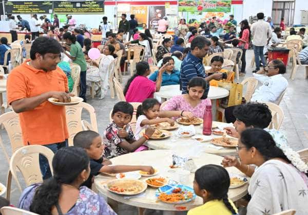 ஸ்மார்ட் ஷாப்பர்ஸ் எக்ஸ்போவில் உணவு அரங்கில் திரண்ட பார்வையாளர்களில் ஒரு பகுதியினர்.